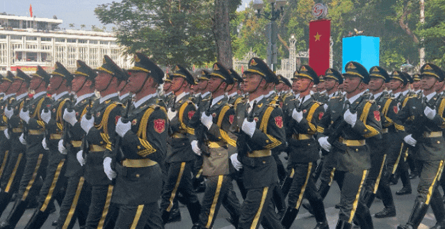 越南是当事国,直接就被中国仪仗队吓尿了,不声不响的下了令,从中国南海全速撤离(越南占据了我国南海三分之一的海域和岛礁);